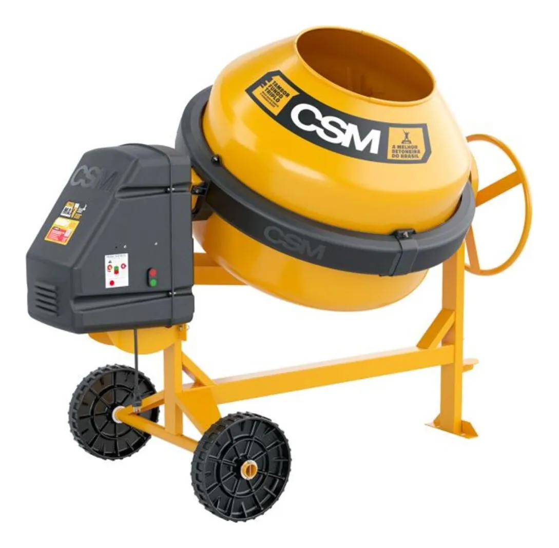 Betoneira elétrica: Este é o modelo mais comum, ideal para pequenas e médias obras. As betoneiras elétricas possuem capacidades que variam de 100 a 500 litros. Elas são fáceis de utilizar e têm a vantagem de não requerer abastecimento de combustível, apenas uma fonte de energia elétrica.